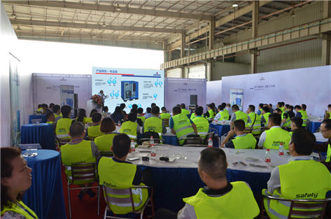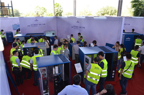 新一代LU系列螺桿式壓縮機全面提高了能源使用效率,即使在惡劣的工作環境中也能可靠運行。新款干燥機更是在環保、適應惡劣工況環境的同時,滿足客戶對潔凈空氣的需求。我們還有相對應的熱能回收,捷能管道等售后服務產品配備,全套壓縮空氣解決方案幫助客戶降低成本,提高效率。在工作人員的帶領下,與會代理商前往展廳參觀了新產品。
